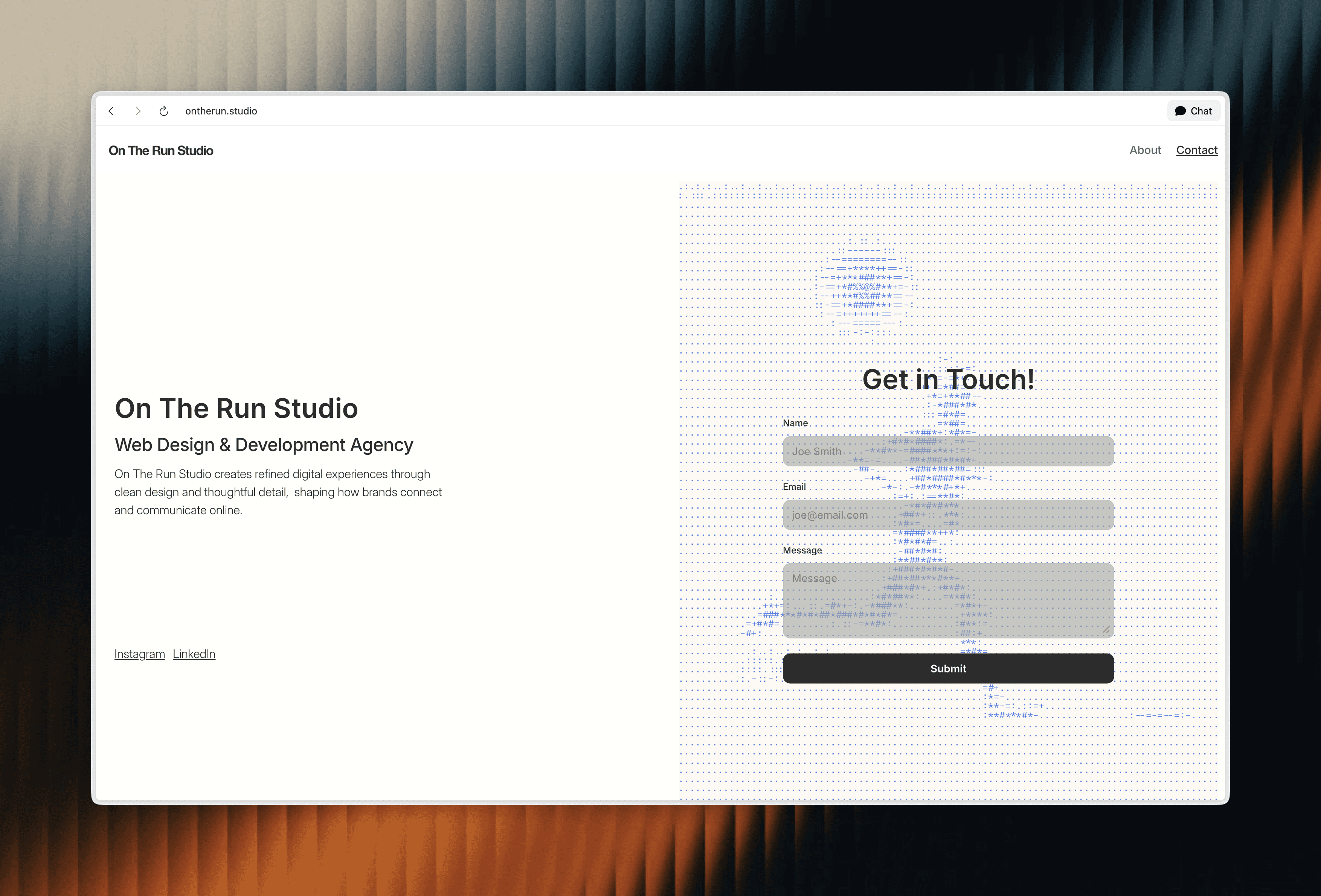 On The Run Studio is a design agency that I founded in 2021. I work with a partner to design and develop websites for clients. We offer a full-service design and development solution, from initial design to launch and ongoing maintenance. *Website is being redeveloped.*